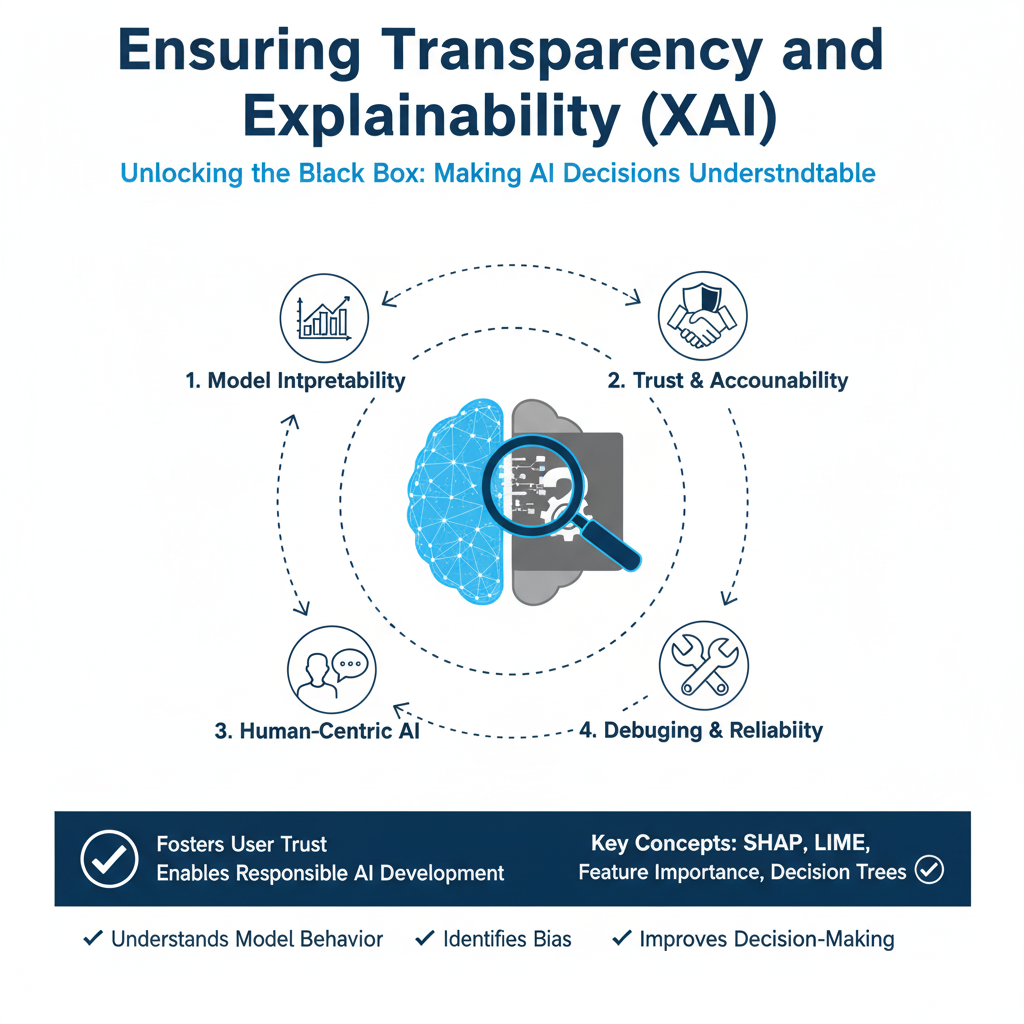 Ethical AI demands a move away from opaque systems toward transparent and explainable AI (XAI).