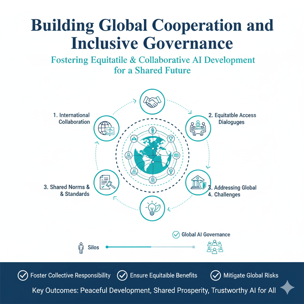 • In Global Cooperation: As a “common language,” Ethical AI provides a neutral ground for nations with different political systems to find consensus on issues like autonomous weapons, data sovereignty, and climate AI. This prevents a destructive “race to the bottom” and ensures that AI advancements can be harnessed to solve global challenges.