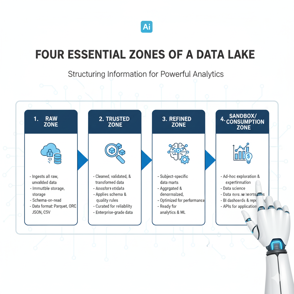 Building a useful data lake is more than just creating a cloud storage bucket and dumping files in it. A well-architected lake has distinct zones, like a water treatment plant.