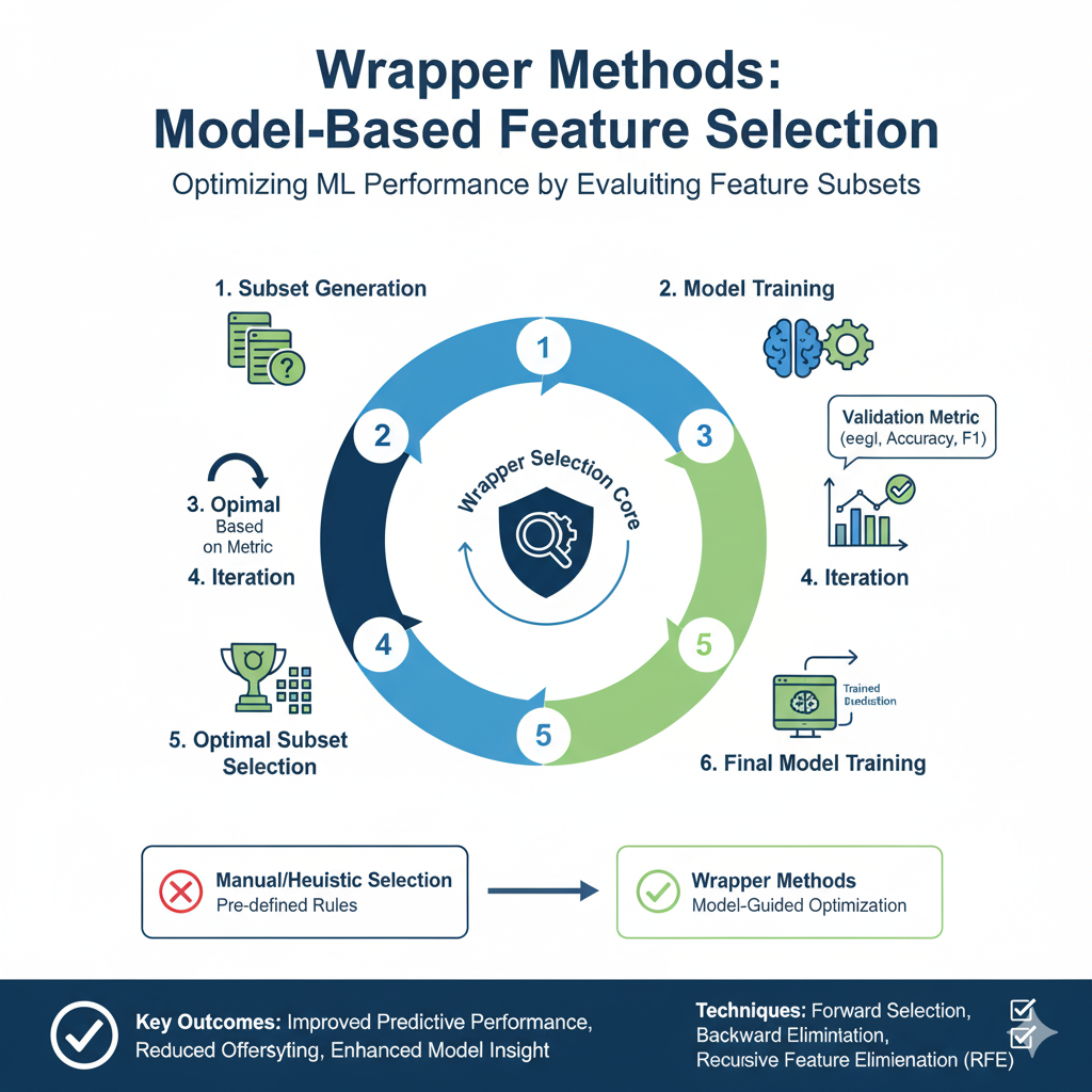 - Wrapper Methods: These methods use a specific machine learning model to evaluate the quality of feature subsets. They perform a search for a high-performing subset of features, making them computationally expensive but often very effective.