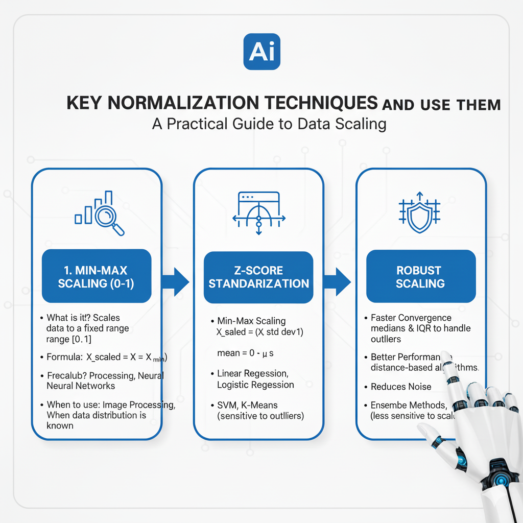 There is no single “best” Normalization method. The right choice depends on your data’s distribution and the algorithm you plan to use. Here are the most common techniques.